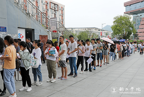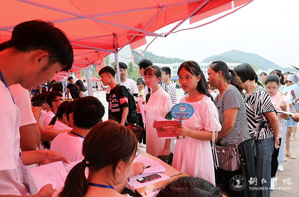 校门口、明德桥头,红色的大拱门让人倍感欣喜,“热烈欢迎2019级新同学”的标语格外显眼。校园大道里,师生往来如潮,身着统一服饰的迎新志愿者带领着新生及家长,有说有笑地赶往报到现场。新生报到第一现场,帐篷林立,喜庆热闹,各二级学院、相关部门的迎新展板各具特色、各显风采,各迎新队伍积极为新生搬运行李、办理报到入学手续、讲解学校概况和报到注意事项,让新生进入校园就感受到了学校师生良好的精神面貌和集体大家庭的温暖。