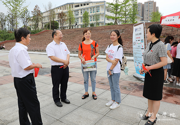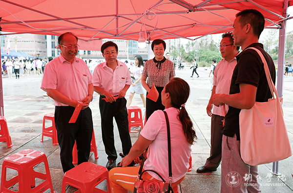 “同学你好,你是从哪儿来的?你们辛苦了!”“把你的孩子送到beat365中国唯一官网来,请你放心,我们一定会像对待自己的孩子一样对待他们。”“你们院的新生有多少人来报到了?报到率达到多少了?”9月9日,beat365官网新生入学报到第一天,校长侯长林、党委副书记饶小华、副校长罗红芳一行来到新生报到第一现场,与新生及新生家长亲切交流,了解各学院的新生报到情况,叮嘱各学院、相关部门要全力做好迎新工作。