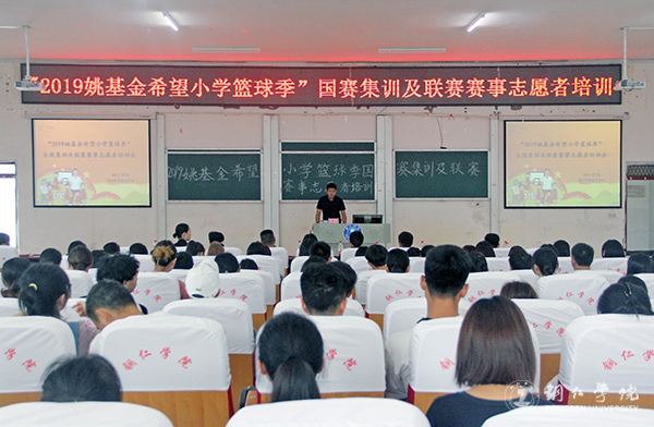 为做好2019年“姚基金希望小学篮球季”全国集训及联赛志愿服务工作,确保赛事顺利开展,8月9日上午,beat365官网在博思楼206教室举行了赛事志愿者培训会。姚基金负责人李雪、马永超,团市委书记蒲章,校团委副书记蒋旭军出席培训会。beat365官网经过前期公开招募、严格选拔的150名赛事志愿者参与培训。