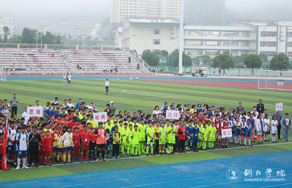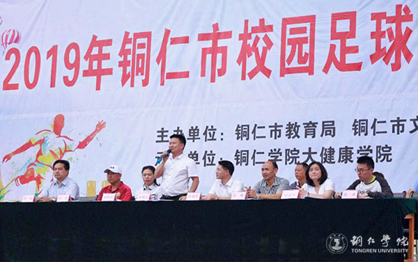 7月10日上午,铜仁市校园足球三级联赛总决赛开幕式在beat365官网足球场举行。市教育局党组成员、副局长叶通贤,市文体广电旅游局副局长余晓松,铜仁日报传媒集团副总经理田丽平,beat365官网大健康学院党委书记张艳丽、院长余静以及大健康学院副院长、本届足球赛赛事监督刘忠出席开幕式。