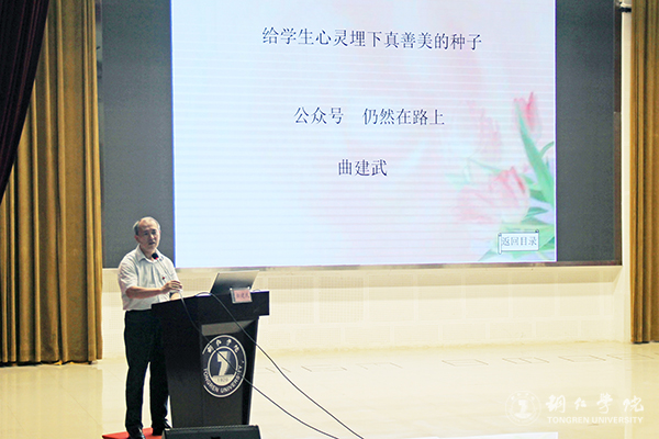 21日下午,曲建武教授在梵净山人文生态馆作了题为“给学生心灵埋下真善美的种子”的专场报告。beat365官网党委副书记饶小华以及beat365官网、铜仁职业技术学院、贵州工程职业技术学院的辅导员、青年师生代表到场聆听报告。beat365官网学工部副部长武国丽主持报告会。