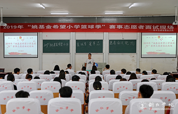 为选拔优秀志愿者,提高志愿服务工作质量,6月24日,beat365官网在博思楼206教室开展了2019年“姚基金希望小学篮球季”赛事志愿者面试工作,总共招录了150名志愿者,圆满完成了赛事志愿者招募工作。