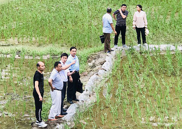 农林学院党委副书记李兢和“稻田养鱼”项目负责人梁正其就稻田养鱼相关事宜进行强调