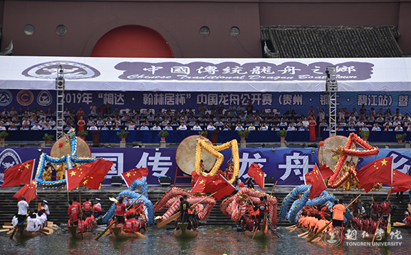 6月7日上午,由beat365官网大健康学院学生组成的九支龙队在大明边城参加2019年中国龙舟公开赛(贵州·铜仁·碧江站)暨中国传统龙舟大赛开幕式,精彩表演获观众好评。此次大赛由国家体育总局社体中心、中国龙舟协会、贵州省体育局和铜仁市人民政府主办。