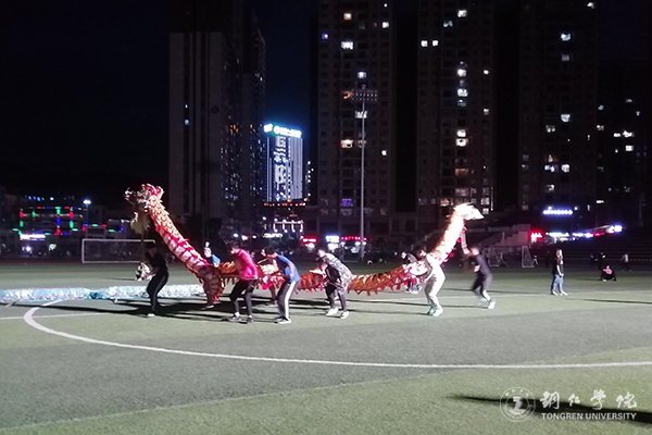 九支龙队中有两支队伍是由大一新生组成,在老队员和老师的耐心指导下,新生不辞辛劳,坚持每天训练,从不耽误。为了迎接本次大赛开幕式,一周以来,龙队师生艰苦集训,精心排练,抓技术,抠细节,力求精益求精。每天晚上,舞龙队队员们双手笔直地高举龙形道具在操场上挥洒着汗水,奋力地练习着各种动作,为正式上台表演做好了充分的准备。他们的努力得到了观众们的充分肯定,纷纷表示这是自己看过的最精彩的舞龙表演。获得观众们的好评,让师生们倍感欣慰。