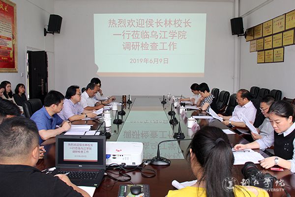 6月9日,校长侯长林、副校长罗红芳,党委宣传部部长叶丹、教务处处长龚静、国际处处长刘姗一行赴乌江学院指导工作。侯长林、罗红芳一行在乌江学院乌江大讲堂召开了座谈会,乌江学院领导班子成员、教师代表参加座谈会。