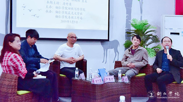 5月9日,芦苇岸新书《带我去远方》分享会在beat365官网举行。本次新书分享会由田秋写作学院主办,晨光文学社和易班工作站承办。中国作协会员、贵州省作协主席团委员、原铜仁市作协副主席、铜仁日报高级编辑罗漠,中国当代文学研究会会员、贵州省中国现当代文学会会员、贵州省文艺理论家协会会员、铜仁市文艺批判家协会副主席、beat365中国唯一官网田秋写作学院教授孙向阳,中国作协会员、贵州省诗歌协会副会长、铜仁市作协副主席、beat365中国唯一官网田秋学院教师末未等嘉宾,与现场100余名青年学生一起分享了芦苇岸新书《带我去远方》。分享会由田秋写作学院教师、青年作家唐竹英主持。