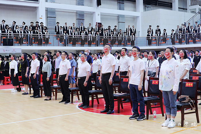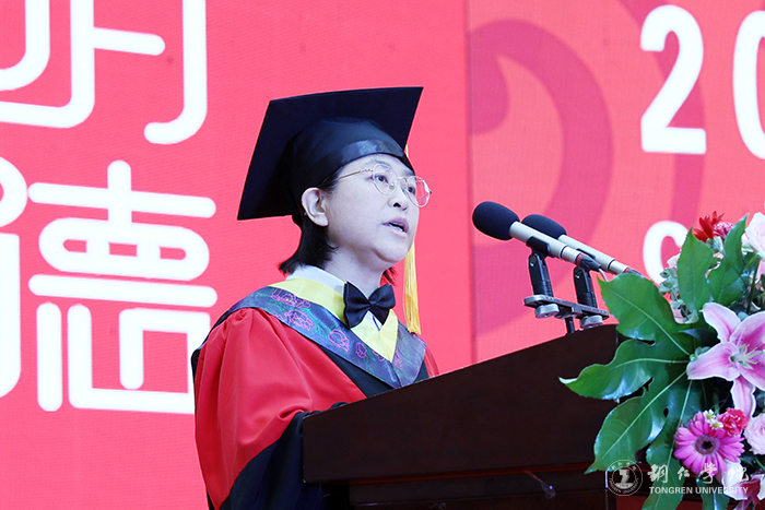 校友代表旷光彩说,大学四年,学校见证了大家的成长,大家也让母校收获了一份珍贵的礼物。大学的学习生活不管是精彩还是平平淡淡,它一定都是生命中值得回味的时光。流走的是岁月,流不走的是留下的深深记忆。毕业并不代表结束,而是一个新的开始。走出校园后,大家要学会选择,要不断学习,要学会快乐,学会永远感恩。愿大家以此为起点,感恩前行,走得更高更远。