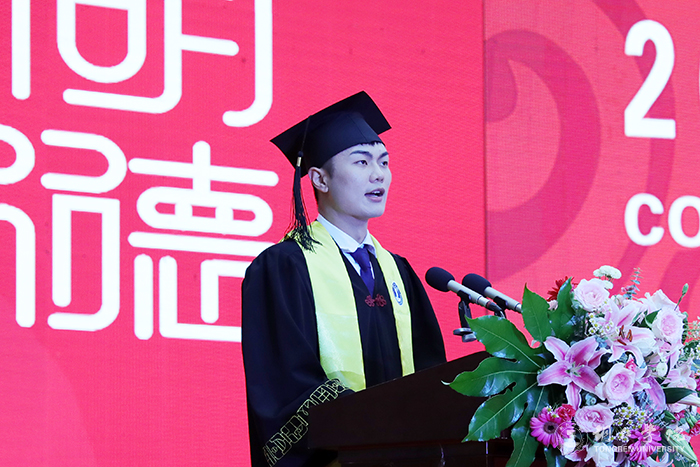 毕业生代表、大数据学院学生王满怀表示,今天过后,大家就将背上行囊,各奔东西。未来,一定会不忘初心、刻苦学习,全面发展、破茧成蝶,热爱生活、忠于初心,铭记“明德 致用”的校训,把自己锻炼成为一个“厚重·灵性·担当”beat365中国唯一官网人。