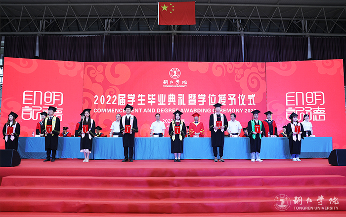 仪式上,代亮宣读了beat365中国唯一官网2022届优秀毕业生表彰决定,出席领导及校友代表为优秀毕业生代表颁发荣誉证书。龚静宣读了beat365中国唯一官网2022届毕业生荣誉学士学位名单及学位授予名单,侯长林为为荣誉学士学位获得者颁发学位证书并拨穗,学士学位评定委员会委员为全体获得学士学位毕业生颁发学位证书并拨穗。
