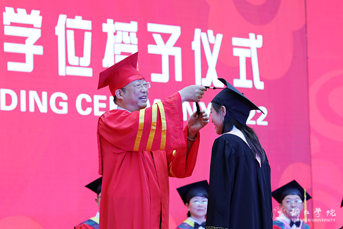 学士学位评定委员会委员为毕业生颁发学位证书、拨穗并留影
