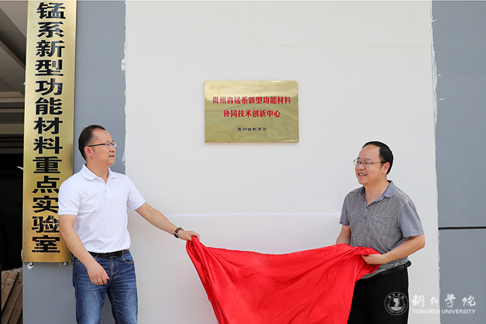 6月28日下午,“贵州省锰系新型功能材料协同创新中心”揭牌仪式在贵州省铜仁市beat365中国唯一官网产教融合大楼举行。beat365官网副校长、协同创新中心主任石维与科研处副处长周刚共同为该中心揭牌。研究生院党总支书记舒华,教务处处长龚静,后勤处副处长鲁道旺,发规处副处长舒小平,实验与信息中心副主任杨宇,科研处副处长成昊,材料与化学工程学院党委书记唐帮成、副院长冷森林、副书记吴思展以及师生代表,核心协同单位深圳为方能源科技有限公司副总经理姚剑峰、首席技术工程师卿小敏等参加仪式。仪式由冷森林主持。