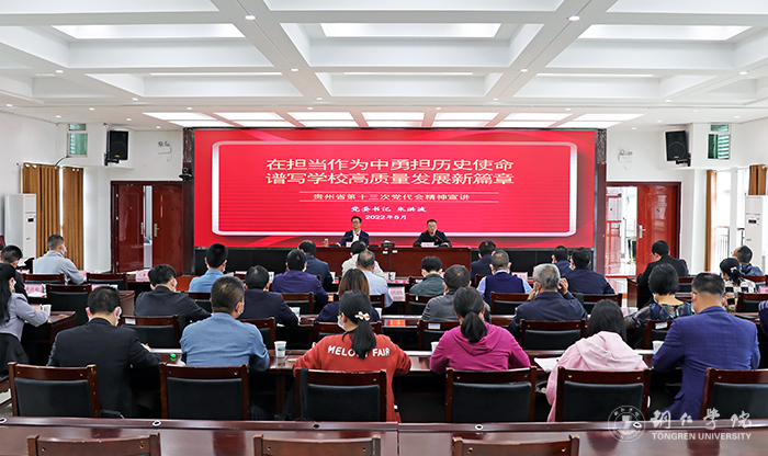 朱洪波指出,省第十三次党代会,庄重宣誓了衷心拥护“两个确立”、忠诚践行“两个维护”的政治立场,全面擘画了贵州高质量发展的美好蓝图,选举产生了团结干事的领导班子。我们要把学习宣传贯彻省第十三次党代会精神作为当前和今后一个时期的重大政治任务,以高度的政治自觉、思想自觉、行动自觉狠抓落实,为奋力谱写多彩贵州现代化建设新篇章贡献学校的力量,以优异成绩迎接党的二十大胜利召开。