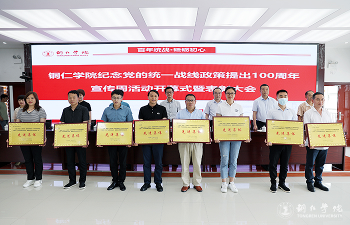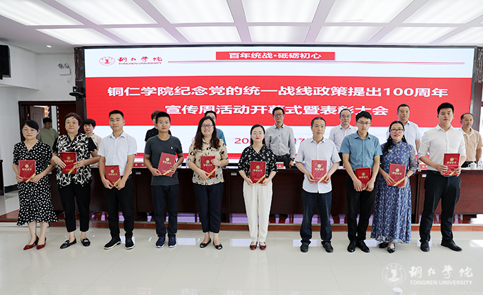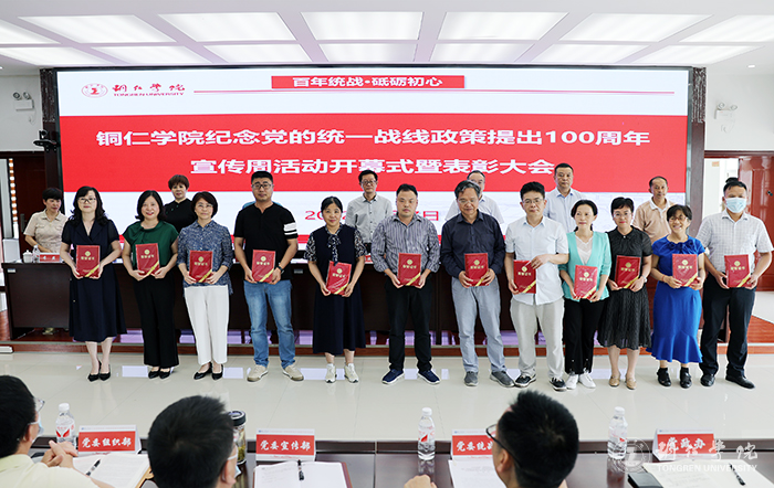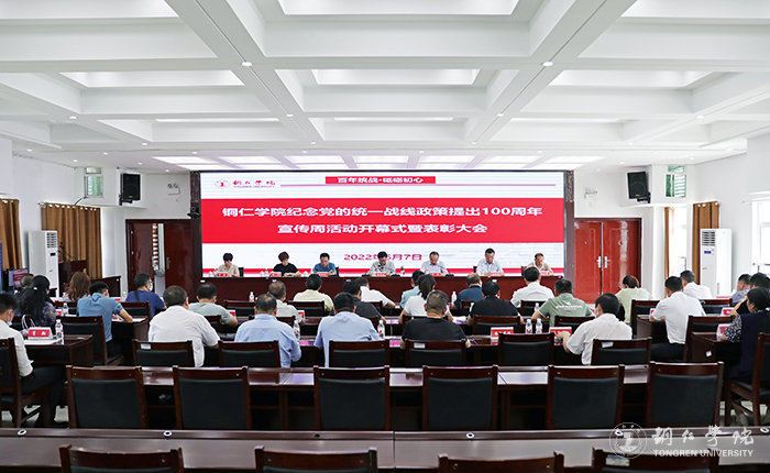 6月7日,beat365官网在行政楼8501会议室召开“百年统战·砥砺初心”纪念党的统一战线政策提出100周年宣传周系列活动开幕式暨表彰大会。学校党委书记、统战领导小组组长朱洪波,铜仁市委统战部副部长赵相林,铜仁市民宗委党组成员、副主任杨成刚,铜仁市教育局正县长级干部杨玲,铜仁职业技术学院党委委员、统战部部长强寿荣,铜仁幼儿师范高等专科学校党委委员、统战部部长李燕,贵州省健康职业学院党委宣传统战部统战科副科长胡琴琴等领导和嘉宾出席会议。beat365官网党委副书记、统战工作领导小组副组长代亮主持会议。