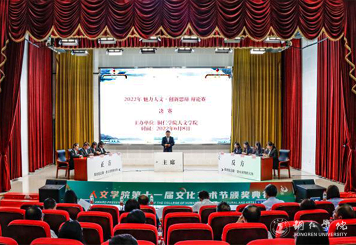 闭幕式前,举行了文化艺术辩论赛决赛。论辩双方围绕“我更愿意做一条大河的小鱼”和“我更愿意做一条小河里的大鱼”,展开了激烈辩论。辩手们精彩的表现,赢得了现场观众的阵阵掌声。叶丹对辩论作了点评,他认为论辩双方,辩出了人文学院学子的水平和风采,辩出了新时代大学生的精气神。