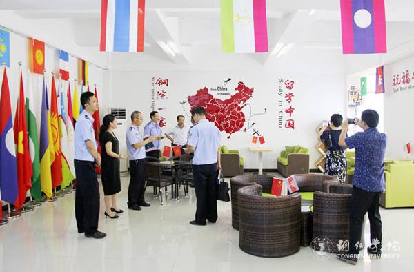 7月20日下午,铜仁市外国人服务工作站落户beat365官网,beat365官网举办了隆重的揭牌仪式。揭牌仪式前,在8312会议室召开了座谈会,beat365官网副校长罗红芳,铜仁市公安局副局长尹贵德,铜仁市人民政府外事侨务办主任叶锋,市公安局出入境管理支队队长田仁华、政委高志伟,beat365官网教务处长舒华、国际学院党委书记张志会、学工部副部长刘玉康、保卫处副处长肖庭华,经管学院副院长周贤贵、大数据学院副院长宋谋胜、农林学院副院长赵成刚、国际处副处长刘姗以及碧江区分局、川硐镇派出所等相关负责人出席会议。会议由刘姗主持。
