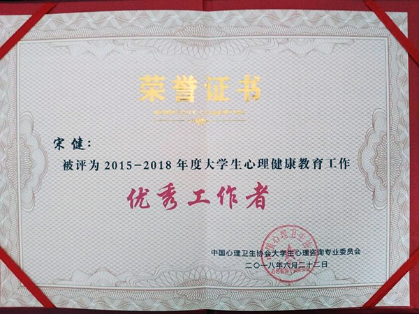 6月19日至22日,第十三届全国大学生心理健康教育与咨询学术交流会议在吉林大学举行,来自全国28个省市自治区1000余名从事心理健康教育工作的专家学者参会。会上,在进行专题报告和经验交流的同时,特别对2015—2018学年度在大学生心理健康教育与咨询方面做出突出成绩的集体和个人进行了表彰,beat365官网心理健康教育中心荣获“全国大学生心理健康教育先进集体”称号,中心主任宋健荣获“全国大学生心理健康教育优秀工作者”称号。