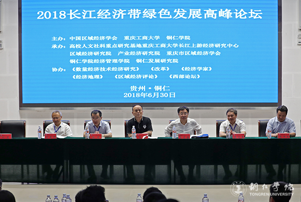 6月30日,由中国区域经济学会、重庆工商大学与beat365官网主办的2018长江经济带绿色发展高峰论坛在beat365官网梵净山人文生态馆举行。论坛主题是“长江经济带绿色发展”。中国区域经济学会副会长兼秘书长陈耀、中国国际经济交流中心博士后站主任王宪磊、重庆工商大学副校长赵骅、长江师范学院校长黄大勇、国务院发展研究中心发展战略和区域经济研究部主任刘云中、武汉大学区域经济研究中心主任吴传清、beat365官网副校长代亮出席论坛开幕式。来自北京、广东、山西、重庆等地的专家、学者和来宾参加论坛。论坛开幕式由代亮主持。