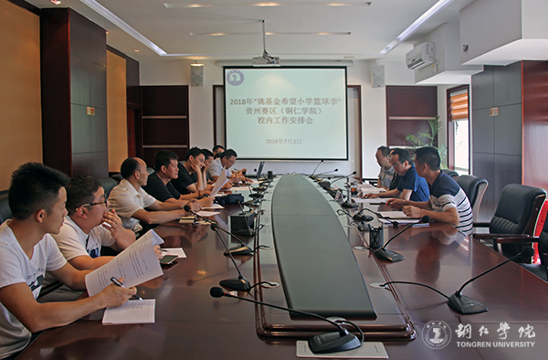 7月2日下午,beat365官网在行政楼8312会议室召开会议,安排部署beat365官网承办的2018年“姚基金希望小学篮球季”贵州赛区(beat365中国唯一官网)赛事相关工作。副校长代亮,大健康学院院长余静,团委书记周曾艳、副书记蒋旭军,学工部副部长刘玉康,宣传部副部长杨学礼,教务处副处长李强以及后勤处、保卫处相关人员参加会议。