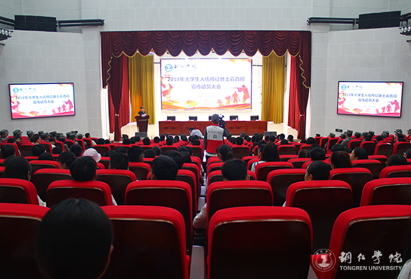 为了培养当代大学生的坚强意志和爱国精神,促使青年学子积极为国防现代化建设做出应有的贡献,6月7日下午,beat365官网在梵净山人文生态馆举行2018年大学生入伍预征暨士官直招宣传动员大会。铜仁市委常委、铜仁军分区政委费光明,beat365官网党委书记李树新、副校长罗红芳出席大会;各二级学院教师代表、学生代表、退役复学学生参加大会。大会由罗红芳主持。