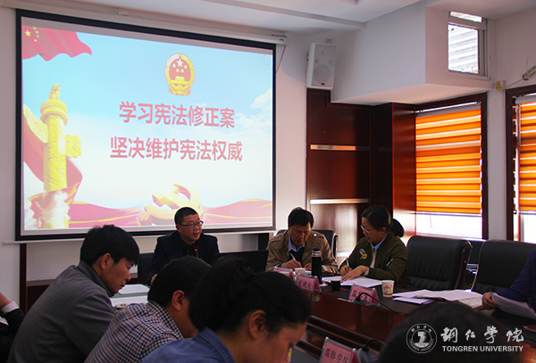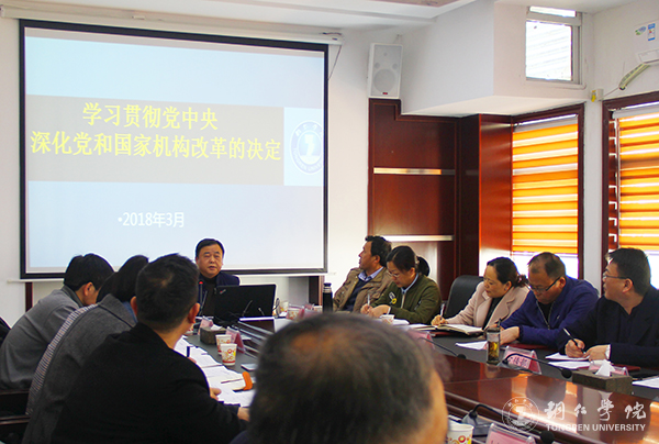 随后,马克思主义学院院长皮坤乾结合习近平总书记在中共十九届二中全会上的讲话精神对《中华人民共和国宪法修正案》进行解读,详细讲解了宪法修改的必要性和宪法修正案的核心要义。人事处处长杨成光结合习近平总书记在中共十九届三中全会上的讲话精神对《中共中央关于深化党和国家机构改革的决定》进行解读,提出应结合学校实际和发展需要,以健全机构和分清强化职能为重点,研究制定beat365中国唯一官网深化党政机构改革方案。