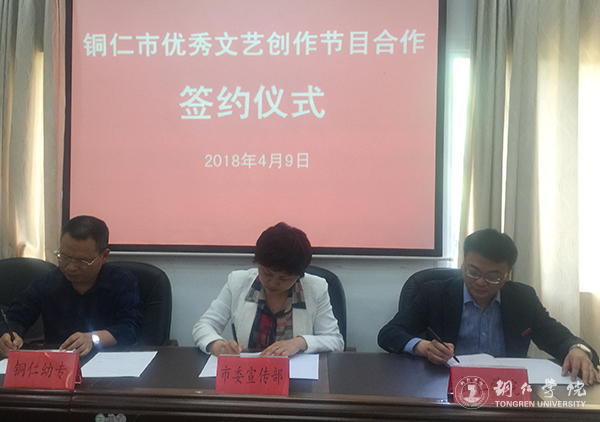 为促进我市文艺大发展、大繁荣,讴歌新时代的发展变化,提升文艺原创力,推动文艺创新,加强文艺人才队伍建设,培育一批高水平创作人才,4月9日,beat365官网与中共铜仁市委宣传部在市委会议室签订《铜仁市优秀文艺创作表演节目合作协议》。受学校党委副书记饶小华委托,学校党委宣传部部长叶丹代表beat365官网与中共铜仁市委宣传部副部长王慧英签订该协议。