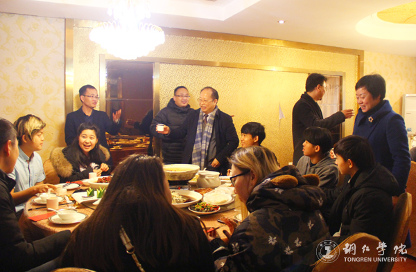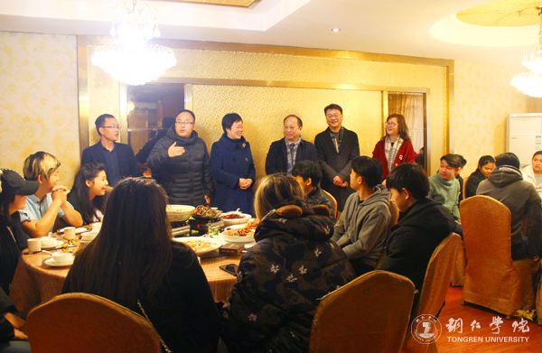 校长侯长林、副校长罗红芳一行与留学生举杯喜迎新春