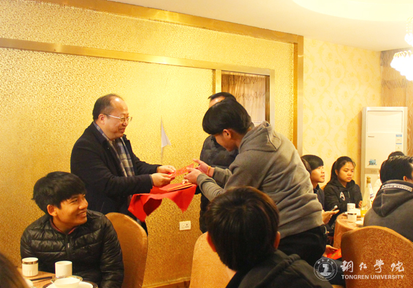 校长侯长林为留学生们送上新年红包