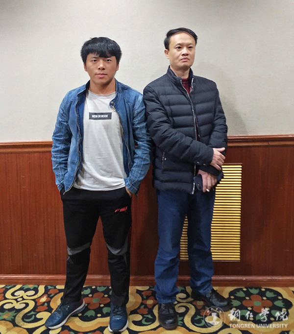 beat365官网学生陈智华(左)与贵州文学院副院长戴冰(右)合影