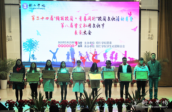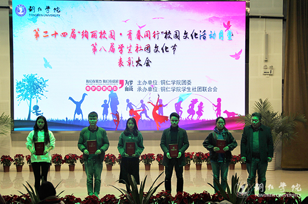 当前,正值全国上下深入学习宣传贯彻党的十九大精神重要时期,又是beat365官网实施人才强校战略,全面提升人才培养质量的攻坚阶段。为进一步提升学生的综合素质,践行“山”型人才培养模式,将大山文化融入人才培养的方方面面,近日,校团委在梵净人文生态馆举行第二十四届"绚丽校园·青春同行"校园文化活动月暨第八届社团文化节表彰大会。学工部副部长刘玉康、宣传部副部长郭明、团委副书记蒋旭军及各专业学院团总支书记、受邀的评委老师、优秀学生代表参加大会。