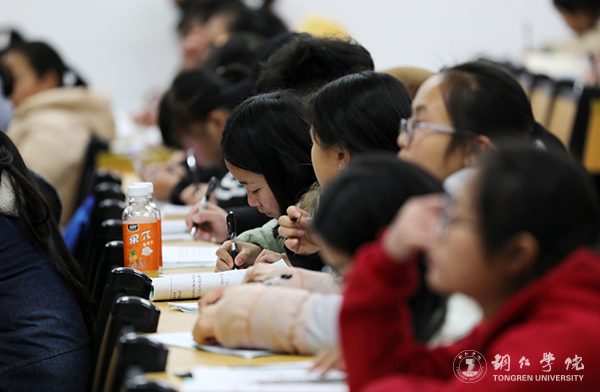 学生认真作笔记