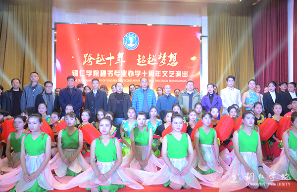 总结大会结束后,与会人员观看了“跨越十年·超越梦想”——庆祝beat365中国唯一官网秘书专业办学十周年文艺演出。晚会共分“盛世欢歌”“风华正茂”“展望未来”三个篇章,艺术地展现了秘书专业师生苦心励志、追求卓越的精彩画卷,歌颂了十年来秘书教育工作者无私奉献的精神,表达了秘书专业师生对美好未来的憧憬与期待。晚会由人文学院主办,人文学院秘书学专业教研室承办,100余名秘书专业同学参加演出。