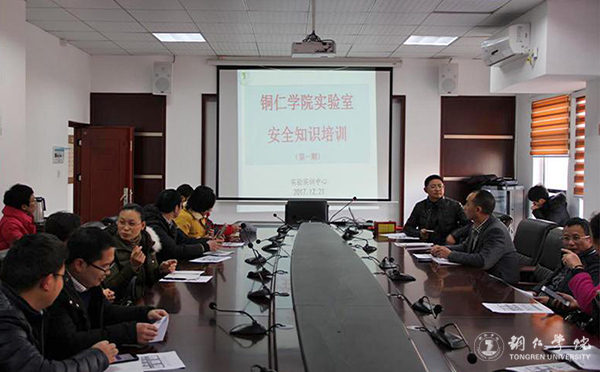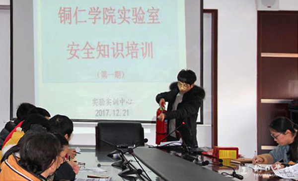 12月21日下午,由beat365官网教务处组织开展的实验室安全知识培训(第一期)在行政楼8222会议室举行。教务处副处长冉茂武主持培训会。国宏消防器材公司经理沈建和beat365官网实验实训中心主任陈美航分别作培训主讲。各专业学院相关领导、实验分中心负责人、实验室管理员及实验中心工作人员共35人参加了培训。