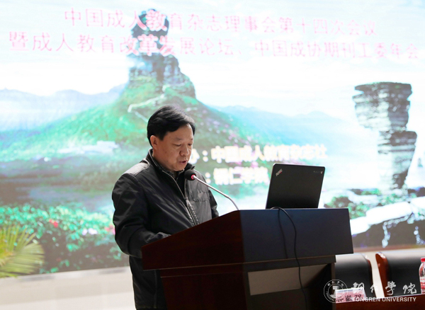 中国成人教育杂志社主编陈明欣作工作报告