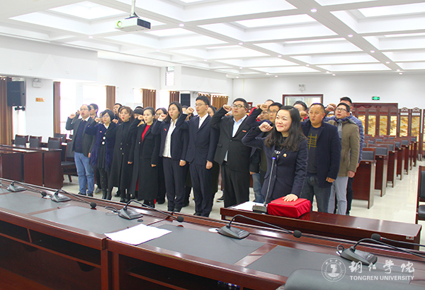 “我宣誓:忠于中华人民共和国宪法,维护宪法权威,履行法定职责,忠于祖国、忠于人民,恪尽职守、廉洁奉公,接受人民监督,为建设富强、民主、文明、和谐的社会主义国家努力奋斗!”12月4日是第四个国家宪法日,当日早上,阵阵宣誓声从beat365官网行政楼8501会议室中传出。beat365官网自2017年3月后提拔的40余名干部在领誓人、校党委组织部副部长徐秋云的带领下,集体宣誓迎国家宪法日,表达其自觉维护宪法,弘扬宪法精神,追逐法治的梦想。向宪法宣誓活动由人事处处长杨成光主持。