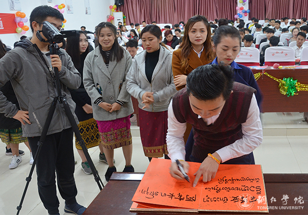 收看结束后,三位留学生接受了采访。他们说,十九大过后,习近平总书记把老挝作为首访国家之一,体现了中国对中老关系的重视,有利于习近平总书记提出的“一带一路”在老挝落地生根。中老政治体制一致,是“好邻居、好朋友、好同志、好伙伴”关系,应该相互帮助,互惠共利,共同发展。他们表示,一定会珍惜在beat365中国唯一官网的留学时光,担当起中老两国合作交流的友好使者,努力学习,不负所托,毕业后为国家的发展建设贡献力量。在场留学生还纷纷在留言板上写下寄语,对中老两国全面战略合作伙伴关系提出良好祝愿。