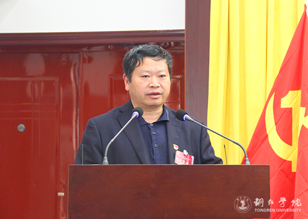 新当选的机关党委委员代表、校工会主席王劲松发言
