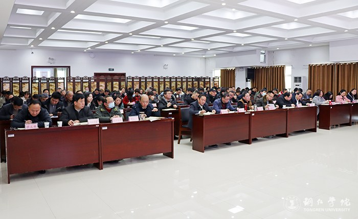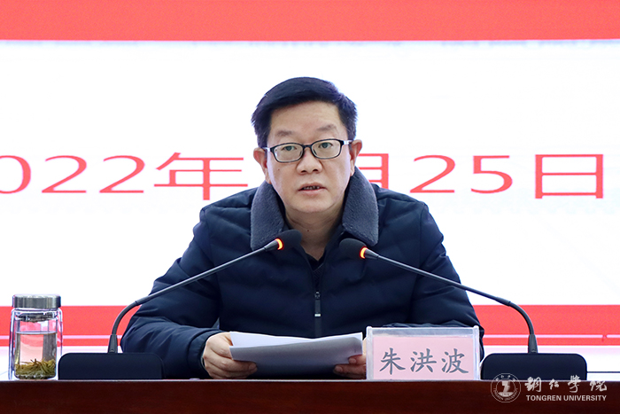 会上,朱洪波作了讲话。他简要回顾了过去一年来的工作情况,充分肯定了取得的工作成绩,并代表学校向全校党员干部和师生员工表示衷心感谢和诚挚问候。他指出,近年来,在全校上下的共同努力下,学校各项事业发展态势持续向好,但面对高等教育日益激烈的竞争态势,尤其是学校新增为硕士学位授予单位后,面临的挑战更加严峻,担负的任务更加繁重。我们要准确把握高等教育发展大势,深刻认识和把握高等教育发展的新特征、新要求;要牢牢抓住历史性发展机遇,充分利用好国发2号文件释放的政策红利,深度融入贵州特色教育强省发展战略,紧紧抓住铜仁市加快建设绿色发展先行示范区带来新机遇;要科学应对高质量发展存在的困难,坚持以系统思维着力破解高质量发展中的重点、难点问题,推动办学治校取得新成效。