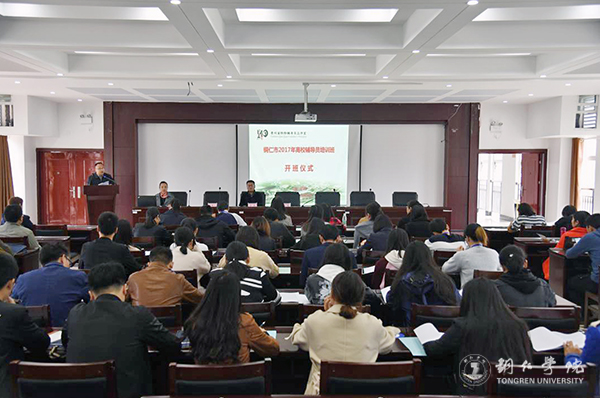 为帮助辅导员更好地掌握学生教育管理工作的方法和艺术,进一步推动学生工作的全面发展,11月7日上午,铜仁市2017年高校辅导员培训班开班仪式在beat365官网行政楼8501会议室举行。beat365官网宣传部部长叶丹,学工部部长张钱、副部长武国丽出席开班仪式,来自beat365官网、铜仁职业技术学院、铜仁幼儿师范高等专科学校、贵州健康职业学院、贵州工程职业学院五所高校的54名辅导员参加此次培训。仪式由武国丽主持。
