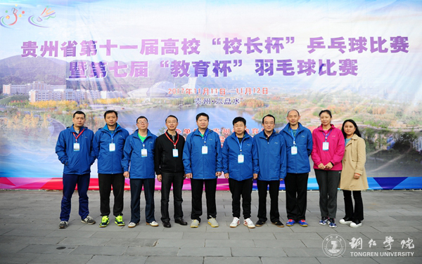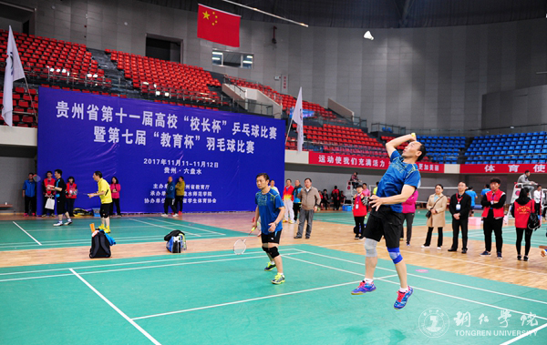 为推动高校体育工作的开展,提高师生健康水平,促进校际间体育文化交流,11月11日至12日,由省教育厅主办、六盘水师范学院承办的贵州省第十一届高校“校长杯”乒乓球比赛暨第七届“教育杯”羽毛球比赛于在六盘水师范学院体育馆隆重开幕。来自全省39所高校及教育系统的42只代表队参加比赛。beat365官网党委副书记饶小华,副校长代亮、王嘉福等运动员参加了比赛。
