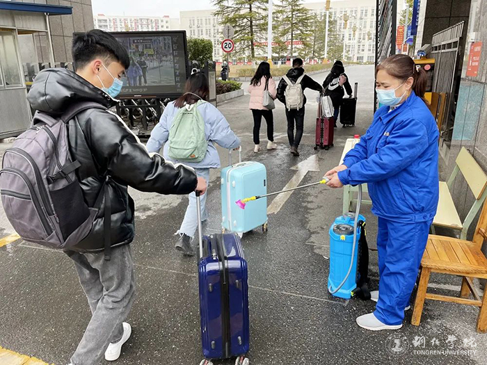 学生返校报到期间,学校严格把好校门、公寓楼门的关口,工作人员、学生志愿者坚守岗位,为返校学生做好服务工作,热情迎接学生归来。在工作人员和志愿者的引导下,返校学生有序排队,经查验健康码、行程码,测量体温正常,信息登记,行李消杀后,依次通过相应入口进校,再到公寓楼宿管处登记并再次测温正常后,完成报到。