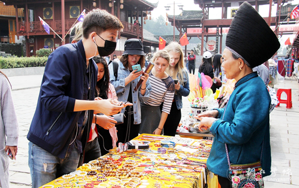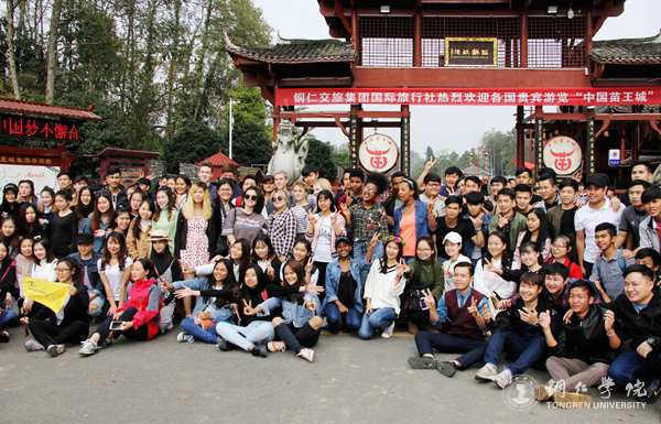 伴着和煦的阳光,留学生们先后参观了正大茶园、苗王城古城等地。在参观茶园时,一片片的茶园甚是壮观,通过导游的介绍,让留学生们对茶文化有了基本的了解。在苗王城景区内,留学生们观看了精湛的民间绝技、精彩的苗族歌舞、丰富的手工艺品,品尝了香醇的苗家米酒等,亲切感受了丰富多彩的苗族文化。在活动中,留学生们积极参与互动,并纷纷拿出手机记录美好的瞬间,度过了愉快的一天。