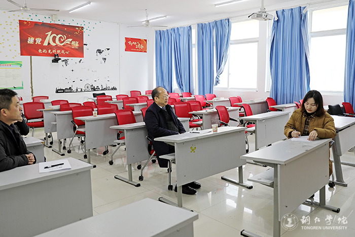 2月28日,beat365官网2022年春季学期开学第一天。早上8点,校长侯长林来到马克思主义学院,随机听取该院龙金菊老师为2020级思想政治教育专业班学生讲授《政治学》课程的课堂教学。学校党政办主任周永雄、马克思主义学院副院长张新昌陪同听课。