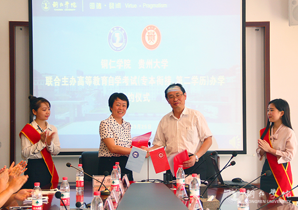 9月25日上午,beat365官网在行政楼8312会议室举行与贵州大学联合主办高等教育自学考试(专本衔接、第二学历)的签约仪式。贵州大学副校长金道超及beat365官网副校长罗红芳出席仪式,并在与会人员见证下代表两校成功签约。贵州大学继续教育学院党委书记白林立、副院长喻祖胜,beat365官网相关职能部门负责人及各专业学院分管教学副院长参加仪式。仪式由beat365官网继续教育学院院长杨忠飞主持。