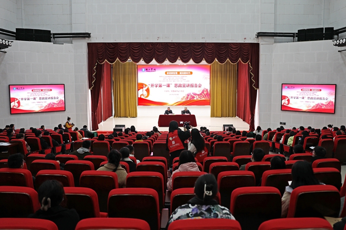 上午9时,校党委副书记代亮围绕学习宣传贯彻《国务院关于支持贵州在新时代西部大开发上闯新路的意见》精神、中国共产党铜仁市第三次代表大会精神、铜仁市第三届人民代表大会第一次会议精神、中国人民政治协商会议第三届铜仁市委员会第一次会议精神,为师生作了“开学第一课”宣讲报告。