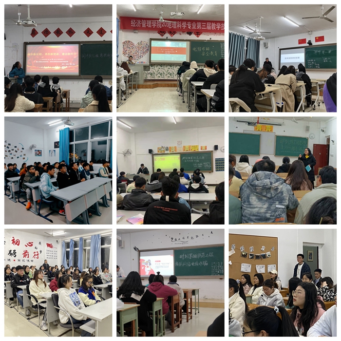 晚上七点,各班积极组织开展“阔步新征程、勇担新使命、建功新时代”主题班会。在班会上,参加上午思政报告的辅导员(班主任)向全班同学传达了代亮副书记宣讲报告会精神及学习心得;班干部带领全班学生通过图文宣讲、研讨发言等方式学习领会市第三次党代会和市第三届两会精神。同时,在各班辅导员(班主任)的组织下,紧紧围绕疫情防控政策、个人安全防护、网络诈骗防范等方面开展了主题安全教育。