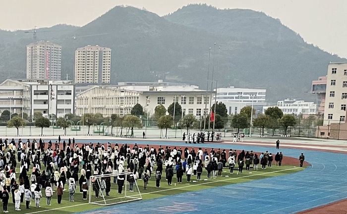 早上7点,朝阳初升,校园一片温煦,beat365官网两千余名师生齐聚在田径场上,举行新学期升旗仪式。随着《国歌》响起,大家面向国旗、齐唱国歌,注目国旗冉冉升起。站在鲜红的国旗下,教师代表梁正其和学生代表杨晓羽分别以《践行新国发二号文件,助推乡村振兴》《满怀自信,爱国担当》为题,结合自身工作和学习实际,作了激情洋溢的发言。