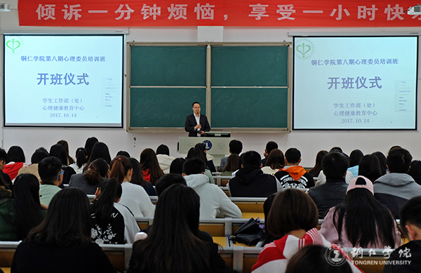 为进一步加强beat365官网学生心理健康教育工作队伍建设,发挥心理委员在健康教育工作中的积极作用,10月14日,beat365官网在博思楼102教室举行第八期心理委员培训班开班仪式暨培训会。校心理健康教育中心主任宋健,专职心理教师夏冰月以及学生心理工作者200余人参加开班仪式。仪式由学生主持。