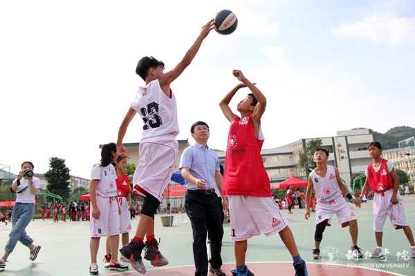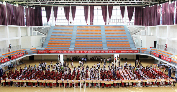 7月14日,由姚基金、中国青少年发展基金会、中国篮协主办,共青团贵州省委、铜仁市人民政府承办,中共铜仁市委宣传部、贵州省青年发展基金会、共青团铜仁市委、铜仁市教育局、铜仁市文广局、铜仁市体育局、beat365中国唯一官网协办的2017年姚基金希望小学篮球季西南片区赛在beat365官网体育馆拉开帷幕。共青团贵州省委副巡视员唐生建,姚基金项目主管马永超,铜仁市委常委、市委宣传部部长夏虹,铜仁市人民政府副市长龙丽红,beat365官网校长侯长林出席。来自云南、贵州两省共44所希望小学的440名学生参加了开幕式。开幕式由龙丽红主持。