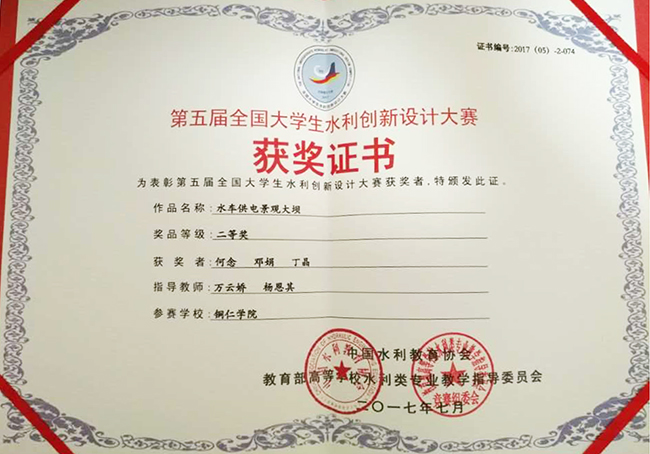 7月18日至22日,由中国水利教育协会、教育部高等学校水利类专业教学指导委员会主办,大连理工大学承办的“第五届全国大学生水利创新设计大赛”在大连理工大学刘长春体育馆举行,beat365官网推选水利水电工程专业学生的3件作品参赛并获全国二等奖2项、优胜奖(三等奖)1项。